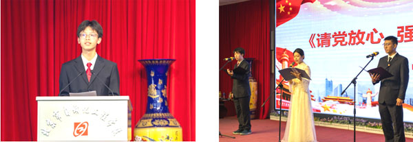 数媒2001班学生表演诗朗诵《请党放心 强国有我》,20级班主任表演诗朗诵《做一个好人》。
