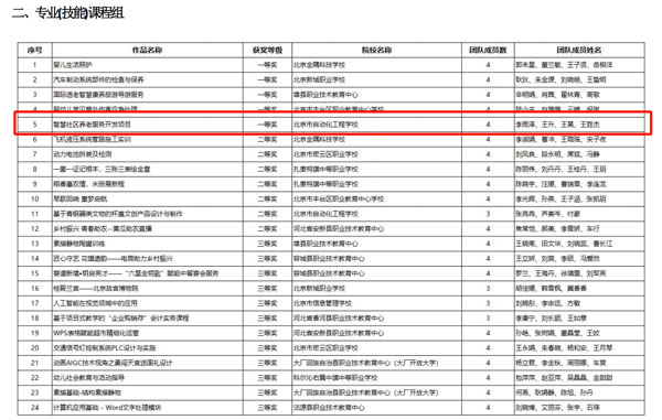 最终,李雨泽、王升、王昊、王胜杰团队以《指挥社区养老服务开发项目》赢得专业课程组一等奖。