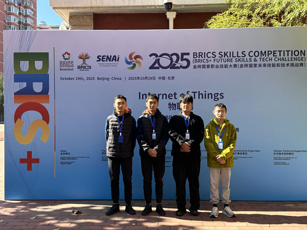 2025年10月19日,2025年金砖国家职业技能大赛中国分赛区物联网赛项区域选拔赛(北京市)在北京信息管理学校圆满举办。信息技术专业科教师李雨泽、王胜杰和学生刘福豪、邹子豪、杨子航、李子豪四名学生组成的师生队伍代表我校参与本次比赛,最终获得区域选拔赛二等奖。